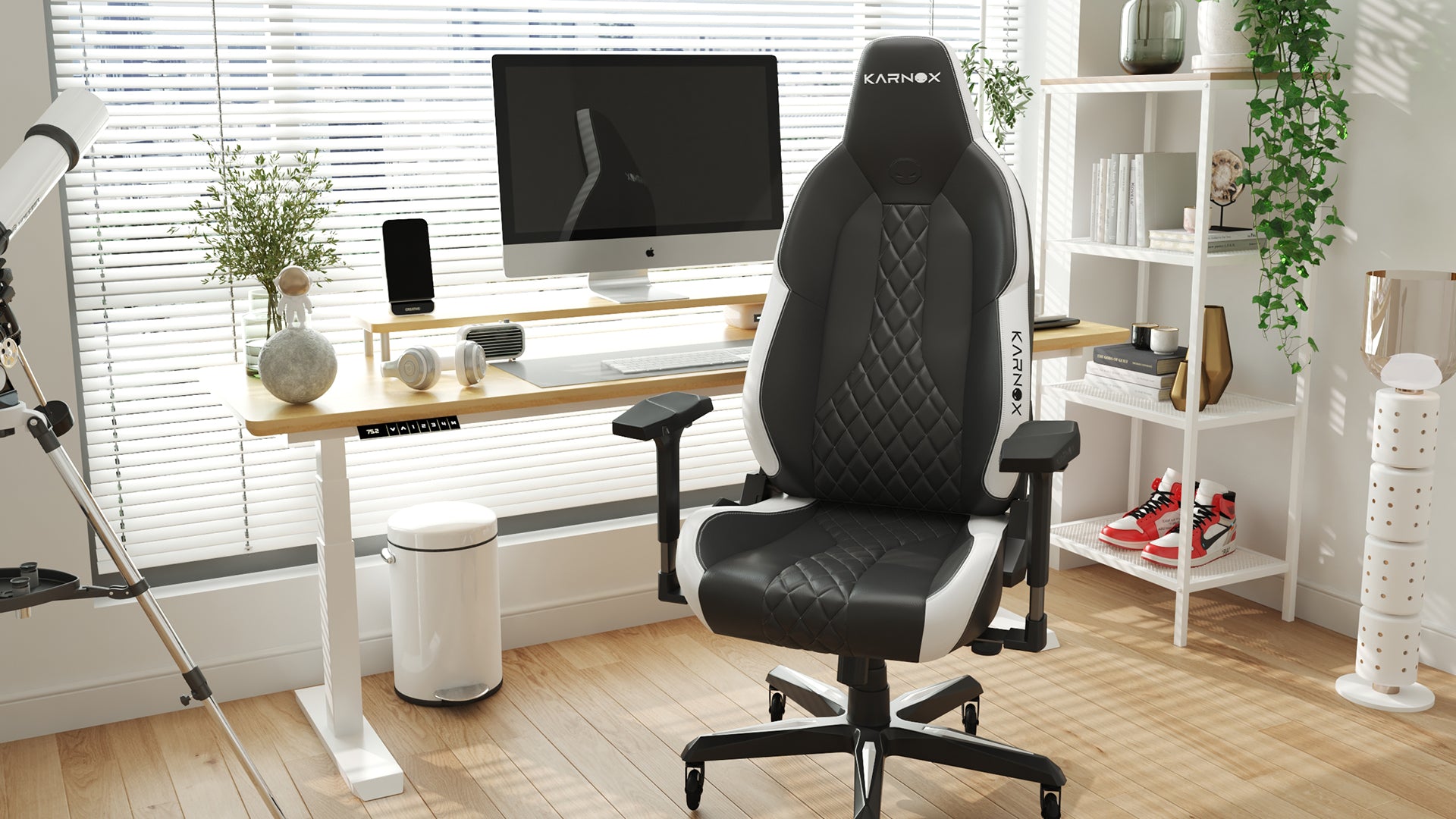 PU Casters:Effortlessly glide on our sturdy reinforced base.Soft Rollerblade Casters:Karnox's upgraded casters feature a softer surface, ensuring smooth and quiet gliding for an enhanced user experience.